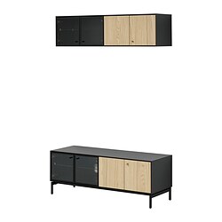BOASTAD is a metal and wood storage furniture series with a strong, modern look. The mix of black metal and oak veneer combines with elegant lines and a thin frame to make a statement in any space – as well as providing smart, flexible storage that lets you hide and display things as you choose.