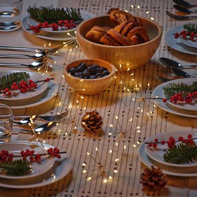 Add some sparkle to your celebrations with elegant dinnerware and shimmering decorations from the FRÖJDA collection – inspired by the crisp Swedish winter. And treat your friends to an unforgettable evening, where even the price tag shines.