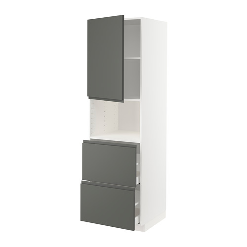 METOD kitchen system gives you endless possibilities to design your dream kitchen. Paired with VOXTORP fronts in matt dark grey with integrated handles, you get a modern look that feels warm and calming.