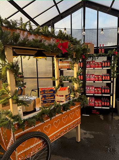 Á veitingastaðnum finnur þú girnilegt úrval af jólaréttum og jólamarkaðurinn í gróðurhúsunum kemur þér í jólaskap með lifandi jólatrjám, ilmandi greni og ljúffengu góðgæti.