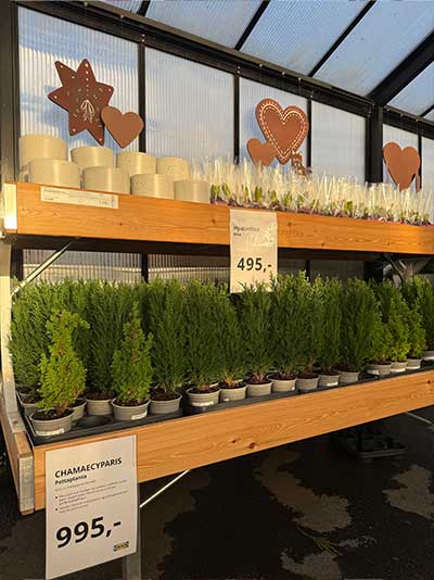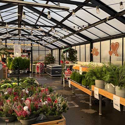 Í gróðurhúsunum fyrir utan verslunina bjóðum við frábært úrval af jólatrjám í hæsta gæðaflokki.