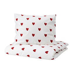 150x200/50x60 cm, mynstur, hjörtu/hvítt rautt