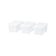 Þrír glærir kassar með loki eru tilvaldir til að geyma lítil leikföng og skrifborðsaukahluti þar til þú eða barnið þurfið á þeim að halda. Úr endingargóðu plasti, minnst 50% af því endurunnið.