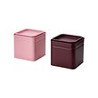 Rauðbrún og bleik dós með fallegri hönnun og áferð – falleg á eldhúsbekknum.