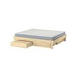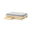 GLAMBERGET húsgögnin eru snjöll, fjölhæf og spara pláss. Þessu stækkanlegu rúmi fylgir VESTERÖY gormadýna – og tvær hirslur og bakkar.