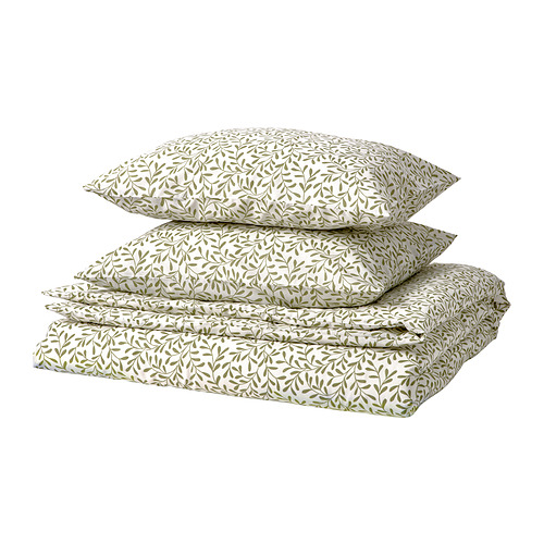Falleg laufblöð gera svefnherbergið náttúrulegra. Sængurverasettið er úr endurunnu pólýester og náttúrulegri bómull. Efnið krumpast lítið sem ekkert, það andar vel og dregur í sig raka.