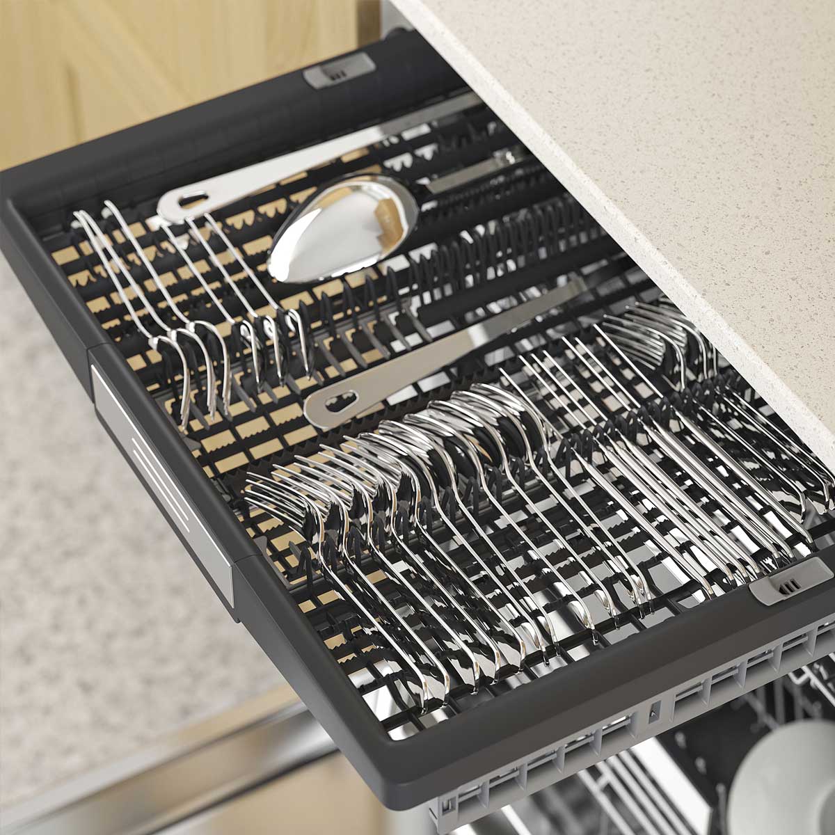 Flestar uppþvottavélarnar okkar eru innfelldar? Þú getur sett á þær sömu framhliðina og er á eldhúsinu fyrir samfellt útlit.
