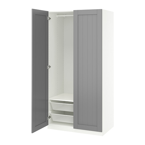 100x60x201 cm, hvítt/grátt