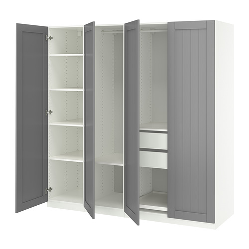 200x60x236 cm, hvítt/grátt