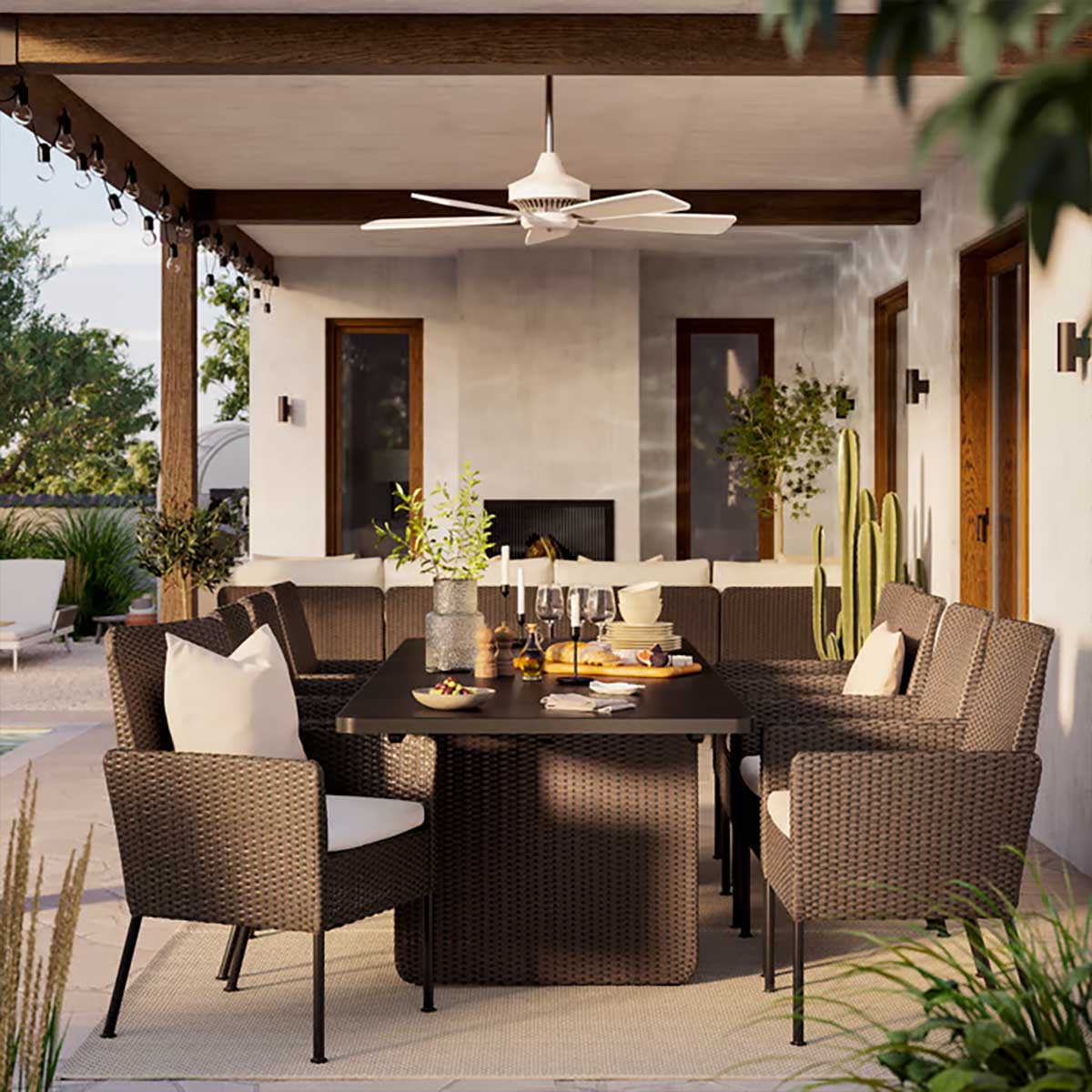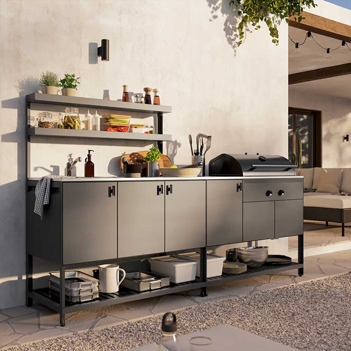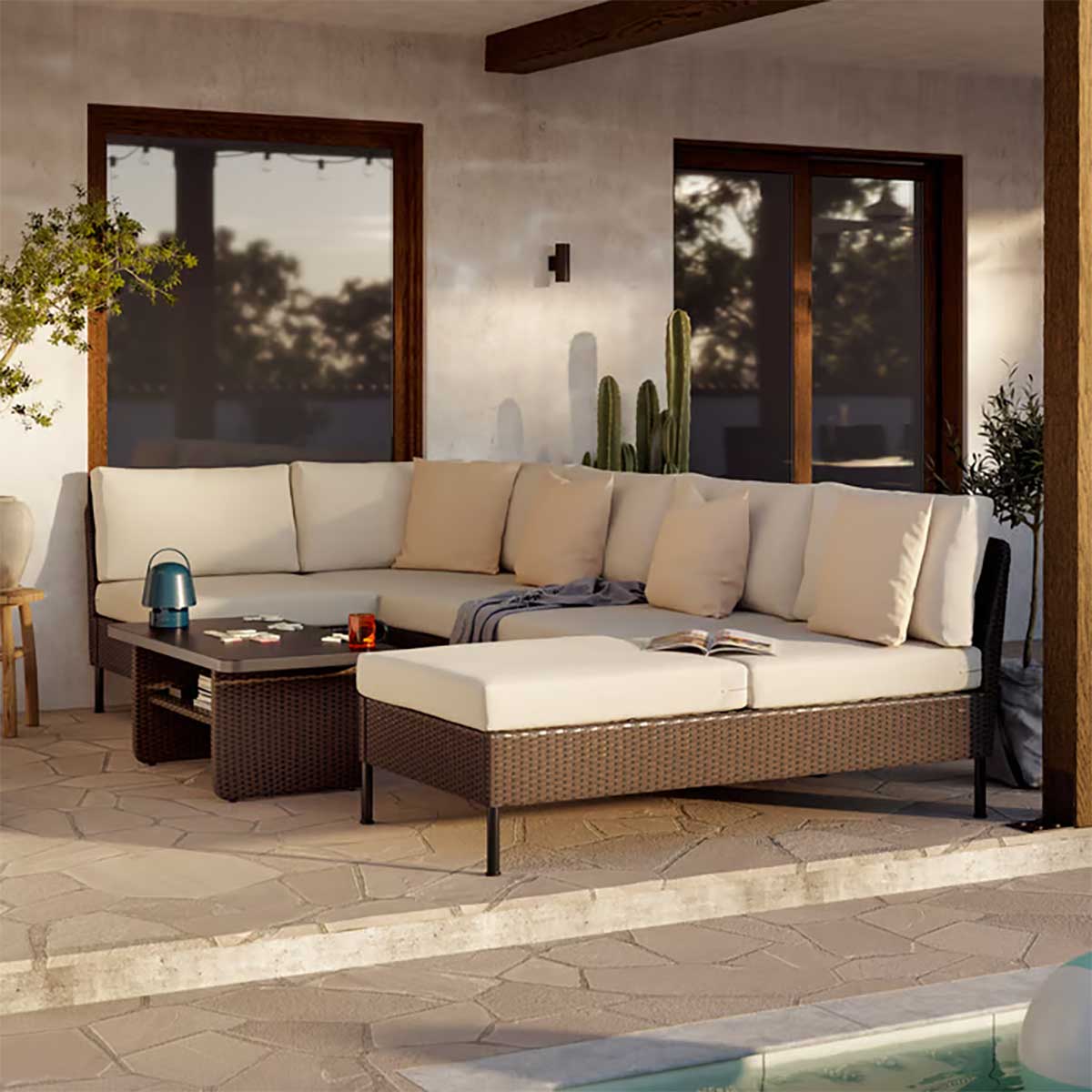 From casual breakfasts to relaxing late-night cosiness (and everything in between), these generous outdoor pieces are easy to mix and match to form something entirely unique. The combination of grey rattan, durable metal and warm acacia wood adds an extra feeling of elegance to your backyard. Step outside and enjoy the season past sunny weather and beyond.