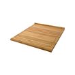 A wooden chopping board is stable and kind to knives. With the proper care, it will serve you for a very long time. Oil it before you use it for the first time. And after that, at regular intervals. Always wash it by hand and let it dry standing on its side. For a real lift - sand it and oil it - and it will be like new again.