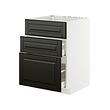 METOD kitchen system gives you endless possibilities to design your dream kitchen. Paired with black stained LERHYTTAN fronts with bevelled edges, your kitchen gets a warm and traditional character.