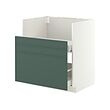METOD kitchen system gives you endless possibilities to design your dream kitchen. Paired with ASPUDDEN fronts in dark grey-green with thin frame, you get a minimalist look that feels warm and welcoming.