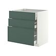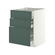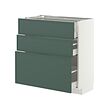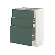 METOD kitchen system gives you endless possibilities to design your dream kitchen. Paired with ASPUDDEN fronts in dark grey-green with thin frame, you get a minimalist look that feels warm and welcoming.