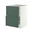 METOD kitchen system gives you endless possibilities to design your dream kitchen. Paired with ASPUDDEN fronts in dark grey-green with thin frame, you get a minimalist look that feels warm and welcoming.