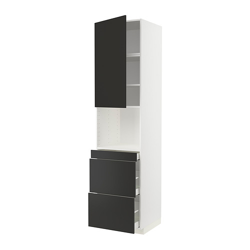 METOD kitchen system gives you endless possibilities to design your dream kitchen. Paired with NICKEBO fronts in matt black, you get a stylish and modern look that is easy to personalise.