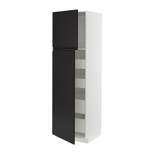 METOD kitchen system gives you endless possibilities to design your dream kitchen. Paired with UPPLÖV fronts in matte black with integrated handle and chamfered edge, you get a modern, graphic feel.