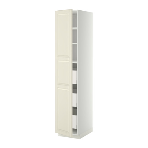 METOD kitchen system gives you endless possibilities to design your dream kitchen. Paired with BODBYN fronts in off-white with bevelled edges you create a traditional look with a warm and welcoming feel.