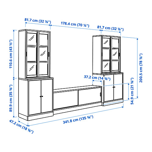 This TV storage combination lets you display your favourite belongings behind glass doors, while hiding cables and electronics behind closed doors.