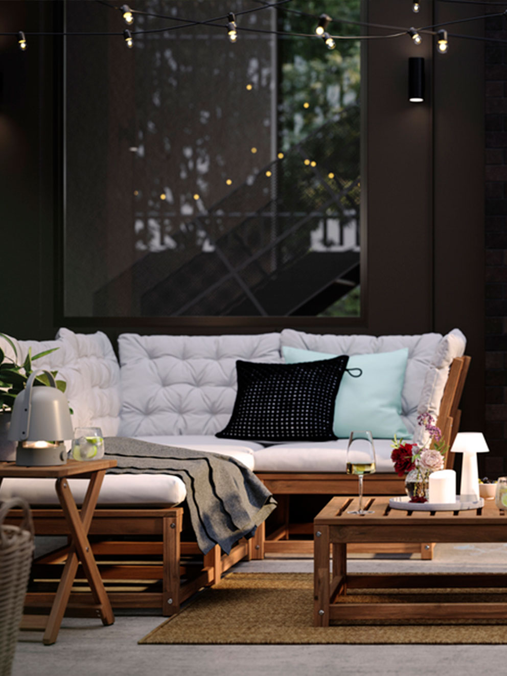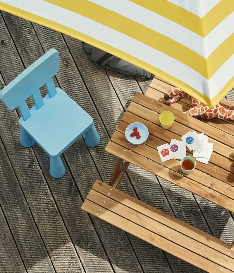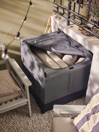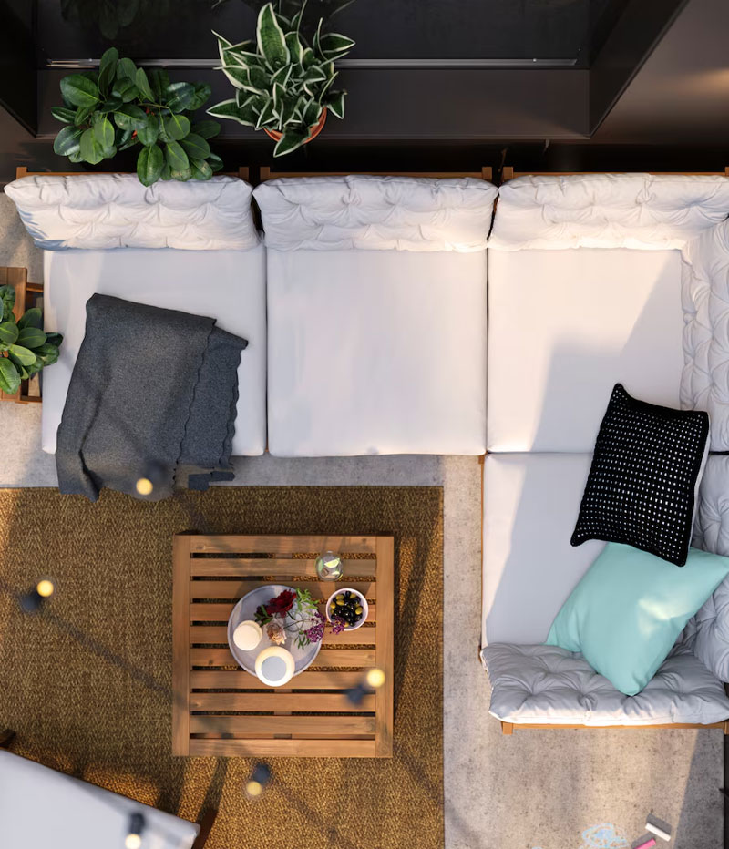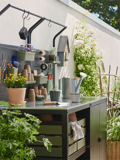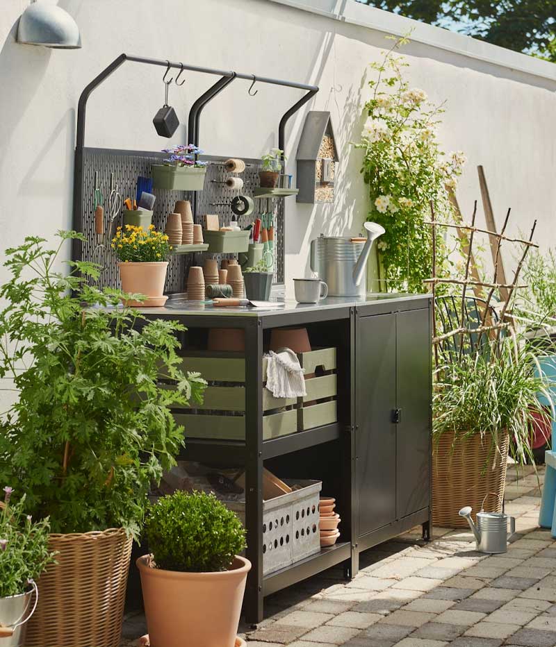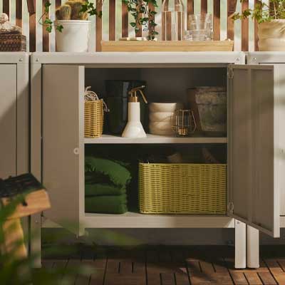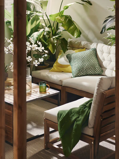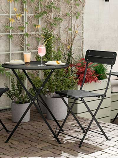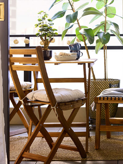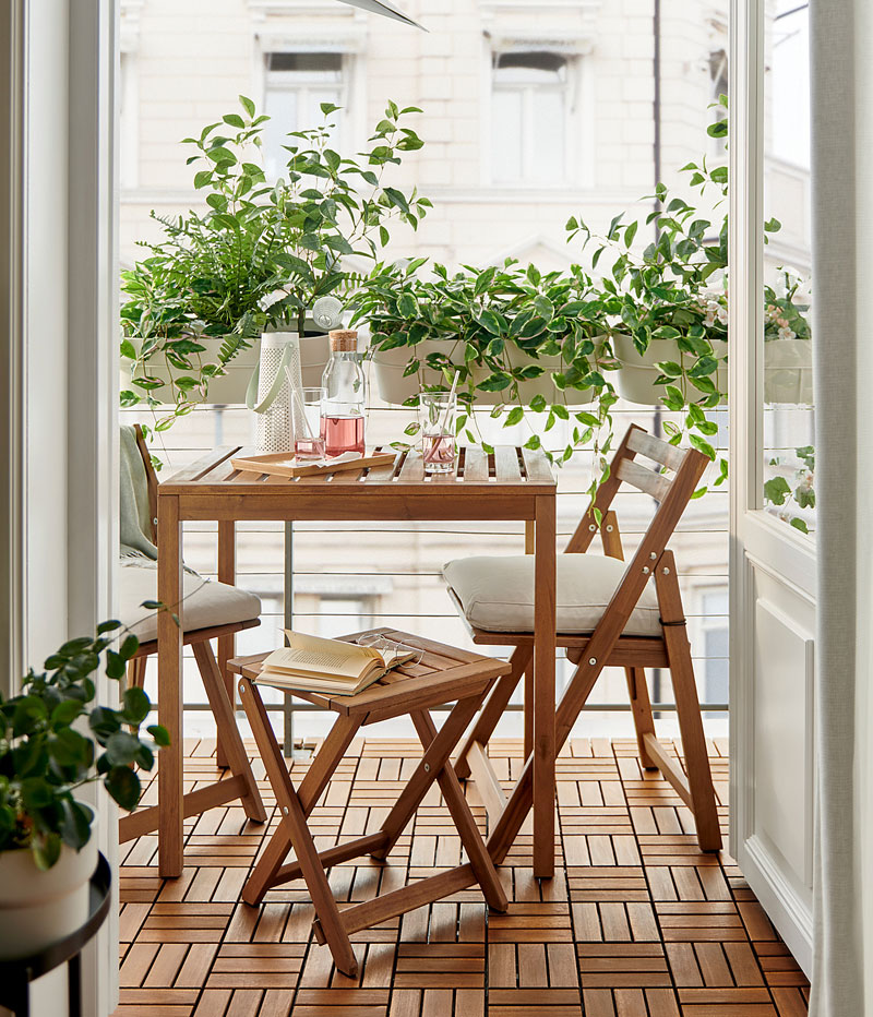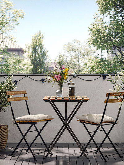 Outdoor furniture for a balcony or small patio needs to offer flexibility so you can make the most of the space. Make good use of wall space with cabinets and shelves. A mix of open and closed storage lets you hide away items you don’t want on display. Foldable tables and chairs that can be set aside come in handy when you want to use the space for something else – like morning yoga, perhaps?Outdoor kitchens