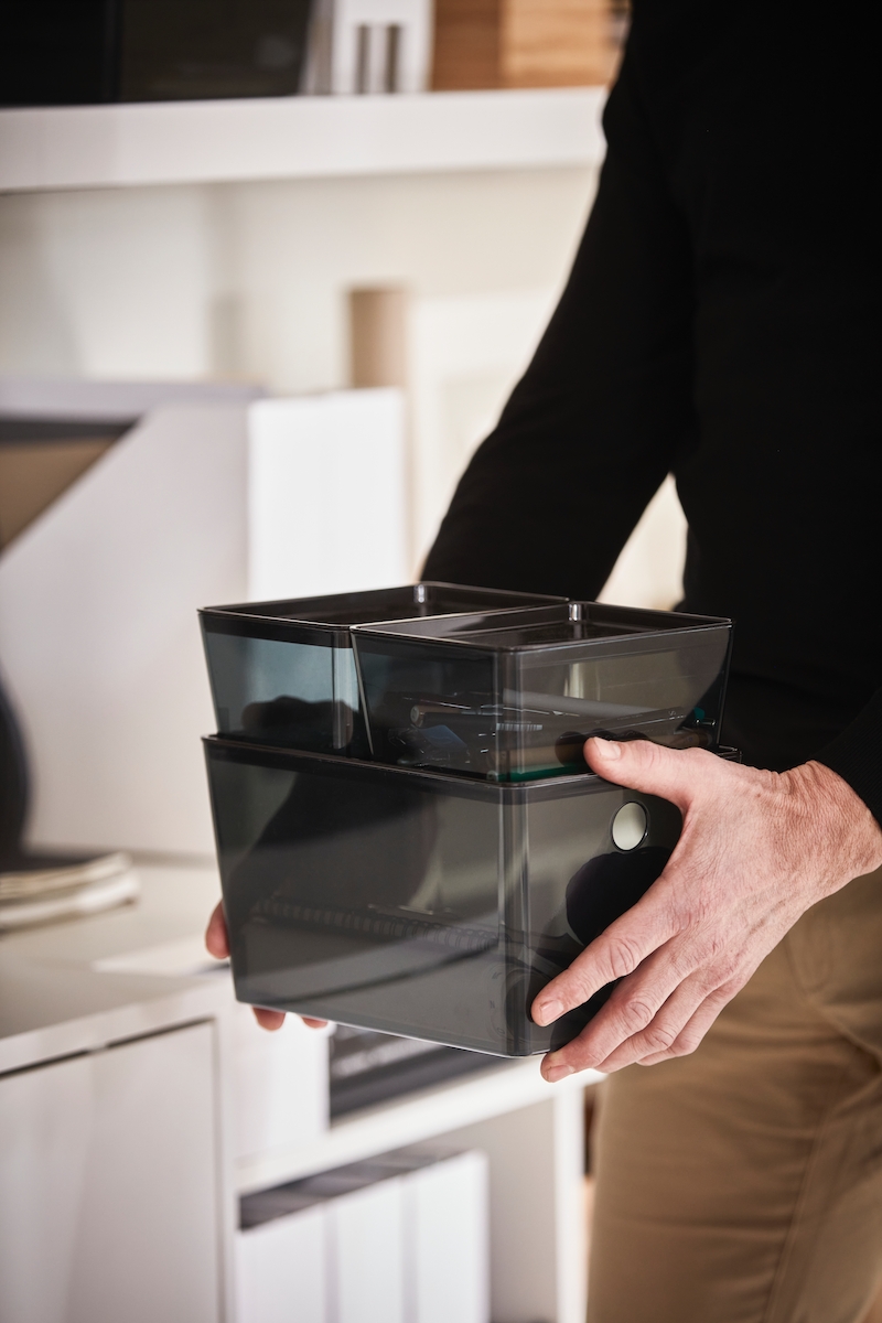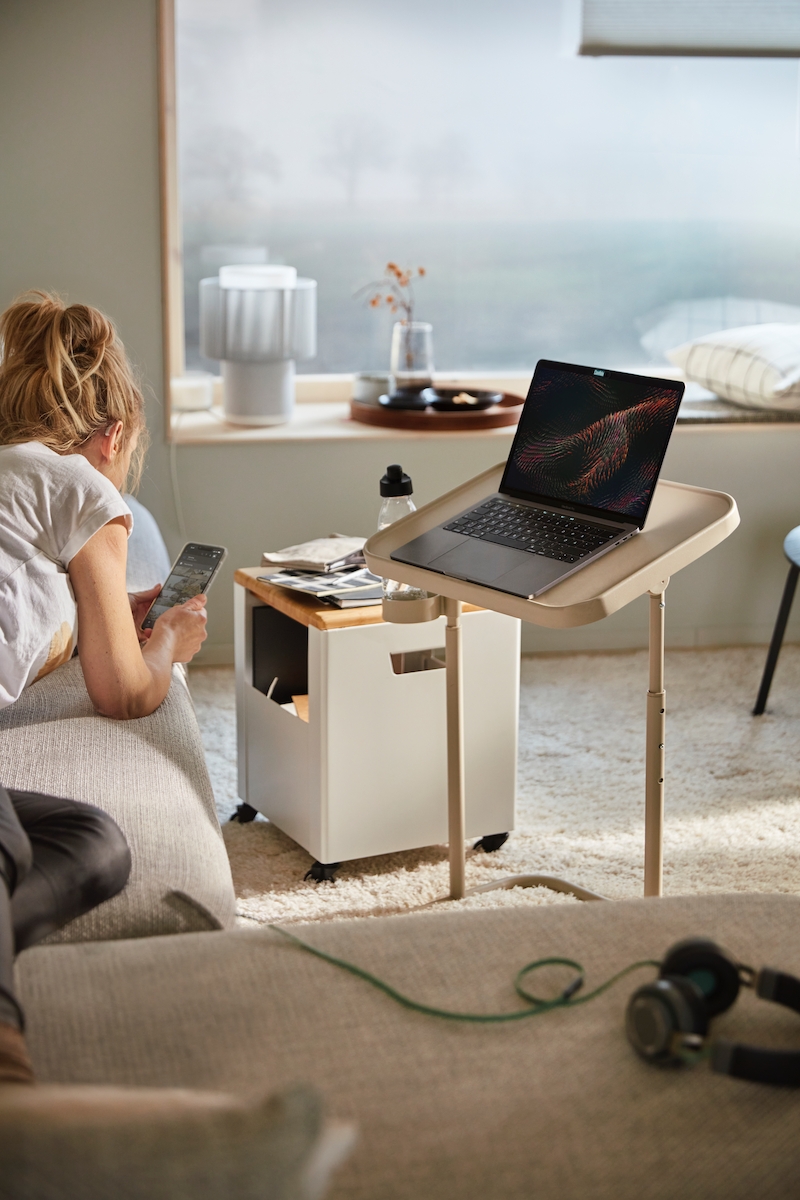 ÄLLET skrifstofustóllinn er með stillanlegri hæð, innbyggðum stuðningi fyrir mjóbak og líkama örmum sem þú getur valið hvort þú setur á. BEKANT hornskrifborðið gerir þér kleift að nýta rýmið til fulls og lágmarka truflun þegar það er upp við vegg.