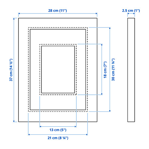 Ramminn passar fyrir myndir í stærð 13×18 cm ef þú notar hann með kartoninu og myndir í stærð 21×30 cm ef þú notar hann án kartonsins.
