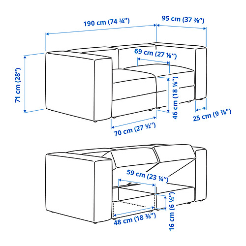 Djúp og jöfn sætin gera það að verkum að JÄTTEBO sófinn er mjög þægilegur, sérstaklega til að liggja á og njóta góðrar bókar.