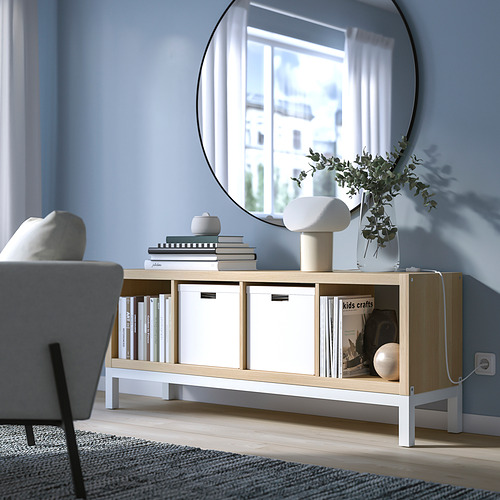Raðaðu saman þinni eigin KALLAX hirslu frá grunni í teikniforritinu okkar. Veldu úr úrvali lita, hurða og fleira til að gera KALLAX hirsluna fullkomna fyrir þitt rými, hvort sem þig vantar sjónvarpshirslu, skenk eða leikfangahirslu fyrir börnin.